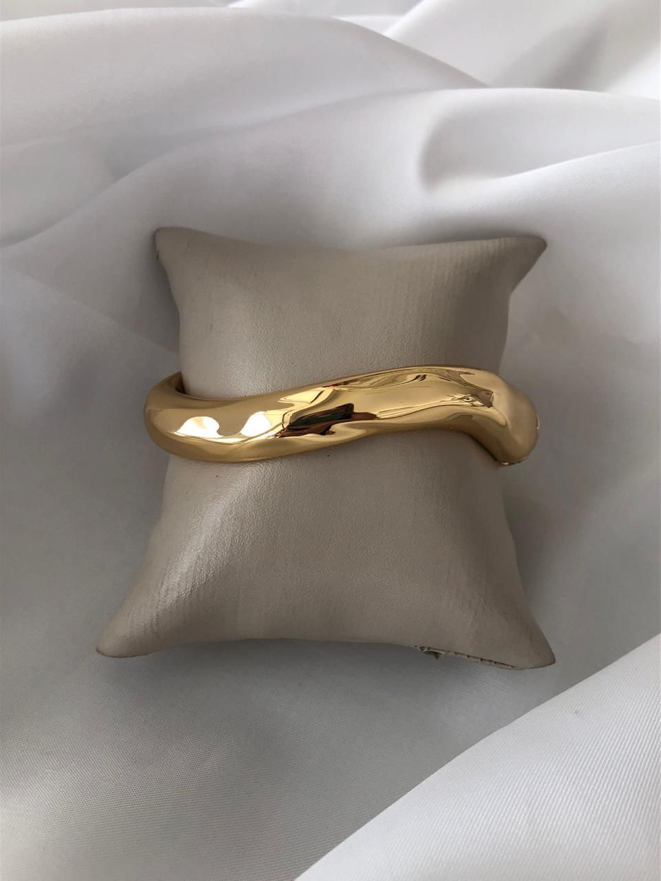 A sofisticação do dourado em linhas orgânicas! O Bracelete Dourado Ondas apresenta formas contínuas que criam um visual moderno e refinado. Seu acabamento polido realça o desenho da peça, conferindo presença e equilíbrio às produções, do uso diário às ocasiões especiais.